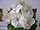 Простые белые цветки с ярко-розовым крапом в центре лепестков.
